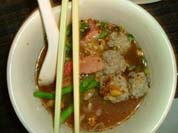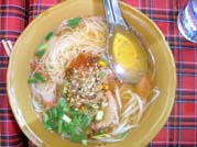 | 色んな麺を食べました。麺の上に乗せる具は色々でした。 鶏団子や焼き豚、燻製豚など、生野菜も、、 スープは鶏がらで取ってあり、少し酸味がつけてありました。 麺は全部米粉で作られていて、細かったです。 ア〜!!また、、食べたいな><;; |